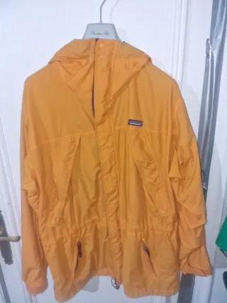 Chaqueta de la marca Patagonia en color naranja. Diseño moderno y funcional. - Capucha integrada. - Bolsillos frontales con cremallera. - Cintura ajustable con cordón.