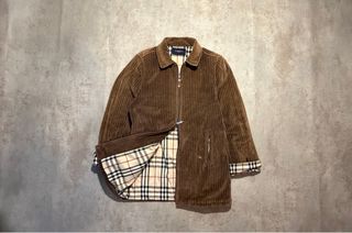 Abrigo de pana marrón con el icónico forro Novacheck de Burberry. - Diseño de pana. - Forro interior a cuadros Novacheck. - Cierre de cremallera.