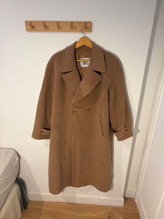 Elegante abrigo vintage de la marca Laura Parker en un bonito tono crema. Una prenda clásica que aporta estilo. Perfecto para looks elegantes o minimalistas. El tejido es suave y con cuerpo, abriga bien sin resultar pesado. Tiene corte recto ligeramente holgado, cuello amplio y cierre frontal con botones. Una pieza especial que no pasa de moda ✨ - Diseño de doble botonadura. - Cuello solapa. - Bolsillos frontales. - Forro interior.