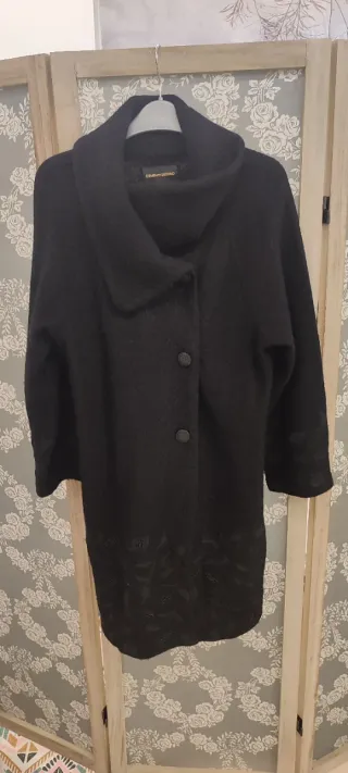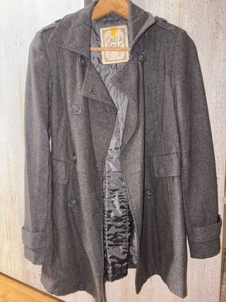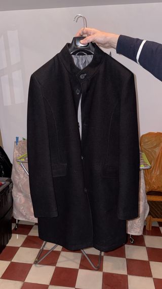 Abrigo elegante con un bonito diseño, talla L aunque al ser suleto para una XL genial, medidas de axila a axila 60cm de largo 96cm, está impecable - Cierre de botones. - Cuello clásico. - Bolsillos frontales.