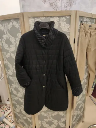 Abrigo acolchado reversible con un diseño moderno y cálido. Por un lado acolchado y por el otro de pelito muy bonito. Bolsillos con cremallera en ambos lados. Es talla única,da hasta la 44, pero mira bien las medidas: - 40cm hombros. - 52cm pecho. - 80cm largo. Como nuevo.