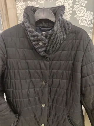 Abrigo de invierno de la marca Zara. Es una prenda elegante y cálida, perfecta para los días fríos. - Diseño acolchado. - Cuello con pelo sintético. - Cierre de cremallera y botones. - Bolsillos laterales.