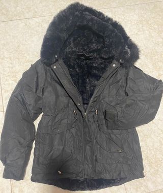Abrigo de invierno en color negro, ideal para el frío. Diseño acolchado con capucha amplia y forro interior de pelo suave, muy calentito y cómodo. Cierre frontal con cremallera y bolsillos delanteros funcionales. Estilo moderno y versátil, fácil de combinar tanto con looks casuales como más arreglados. ✔️ Abriga mucho ✔️ Capucha con pelo (no desmontable) ✔️ Como nuevo ✔️ Perfecto para otoño e invierno 📏 Talla: XS