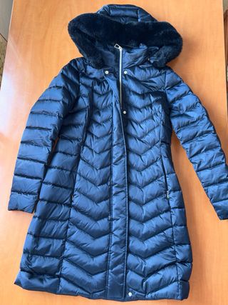 Abrigo largo con un diseño acolchado y capucha. - Capucha con detalle de pelo. - Cierre de cremallera frontal. - Bolsillos laterales. (Precio negociable)