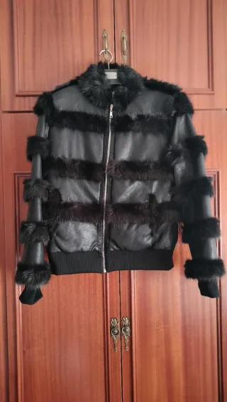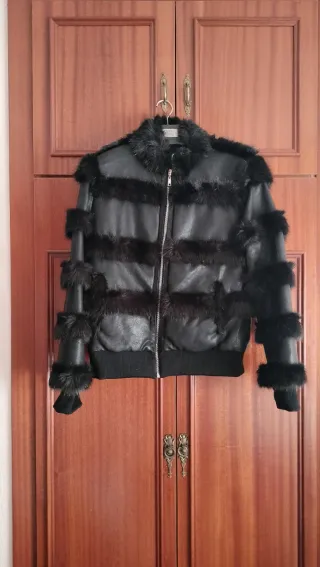 Abrigo elegante con detalles de pelo y piel sintética. - Diseño moderno y llamativo. - Cierre frontal con cremallera. - Puños y bajo elásticos.