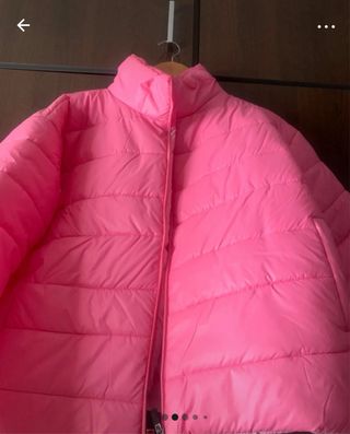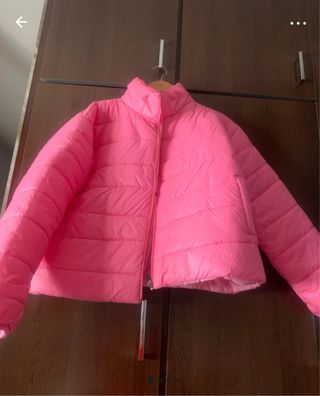 Chaqueta corta acolchada en color rosa. - Diseño moderno y ligero. - Cuello alto. - Cierre de cremallera.