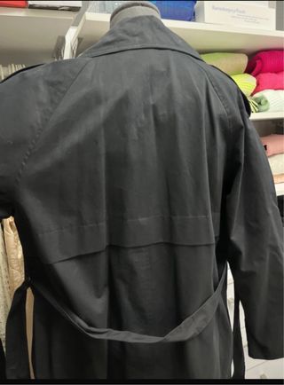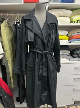 Gabardina clásica de color negro. Un básico atemporal para cualquier armario. - Diseño largo. - Cinturón para ajustar. - Cuello solapa.
