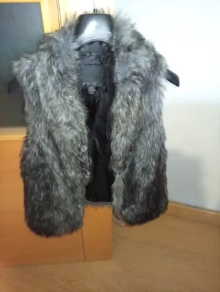 Chaleco de pelo sintético con un diseño moderno y elegante, está impecable, para una altura de 156 quedaría más o menos por el culete - Tacto suave y agradable. - Forro interior negro. - Ideal para añadir un toque de estilo a cualquier conjunto.