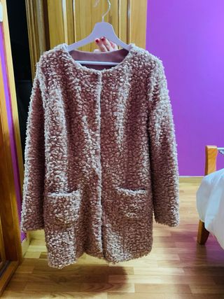Abrigo peluche beige con brillos muy sutiles