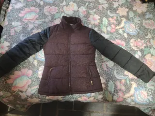 Chaqueta de invierno con diseño acolchado y mangas de diferente material. Cierre frontal con cremallera y bolsillos laterales.Mirar foto que hay un dibujo con las medidas detalladas, bolsa1 - Diseño acolchado en el cuerpo. - Mangas de material diferente al cuerpo. - Cremallera frontal.