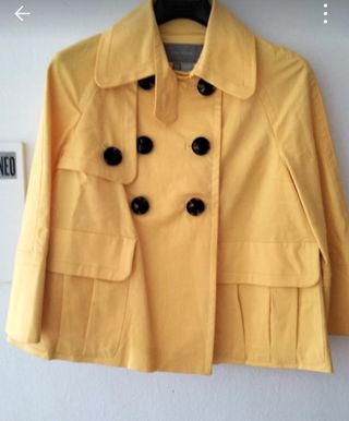 Abrigo en perfecto estado, no tiene bolsillos y queda suelta