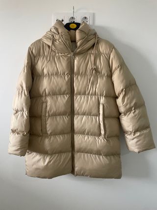 Abrigo acolchado beige con capucha
