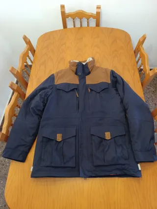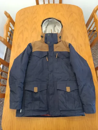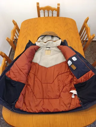 Chaqueta de abrigo Quechua, ideal para el frío.Precio en tienda 120€ - Color azul marino y marrón. - Capucha forrada de borreguito. - Dos bolsillos inferiores con solapa. - Dos bolsillos superiores con cremallera.