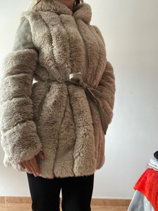 Abrigo largo con detalles de pelo en cuello, puños y frontal. Incluye cinturón. Esta sin estrenar - Diseño elegante y cálido. - Acabado suave al tacto.