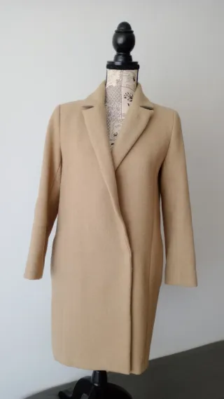 Elegante abrigo largo de color beige, perfecto para cualquier ocasión. Tejido de lana. Corte clásico. Con bolsillos. Talla S. Stradivarius. - Diseño clásico con solapas. - Corte recto. - Tejido de calidad.