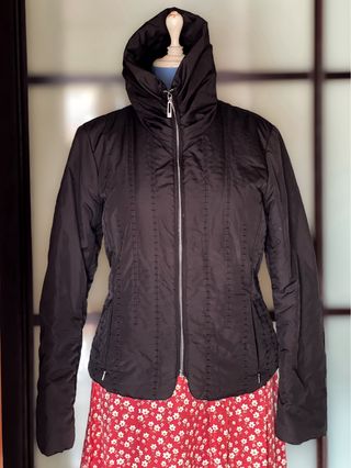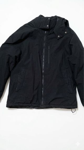 Chaquetón negro con capucha y cierre de cremallera. - Bolsillos frontales. - Bolsillo en el pecho. - Cordón ajustable en el bajo. (solo entrega en persona)