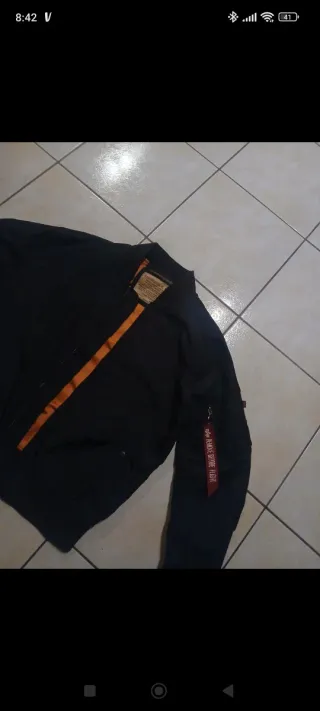 Chaqueta Alpha Industries prácticamente nueva, muy poco uso , no tiene arañazos ni descosidos. Conserva la banda roja. - Diseño reversible con forro naranja. - Cremallera frontal. - Bolsillo en la manga con etiqueta Remove Before Flight.