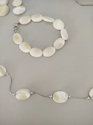 Elegante juego de joyería en plata. - Collar con colgantes ovalados. - Pulsera a juego con diseño similar. - Pendientes colgantes. - Cierre de mosquetón en el collar. - Incluye caja original.