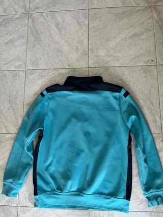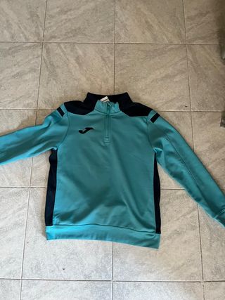 Sudadera deportiva Joma con cuello alto y media cremallera. - Diseño bicolor en azul turquesa y negro. - Logo de Joma en el pecho. - Mangas largas y puños elásticos.