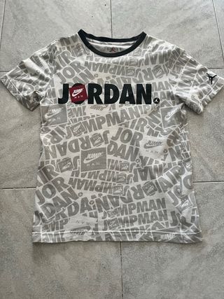 Camiseta de manga corta con estampado integral de la marca Jordan. - Diseño con múltiples logos y textos de Jordan. - Cuello redondo. - Tejido cómodo para el día a día.