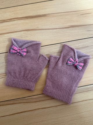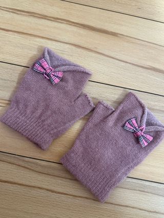 Preciosos guantes sin estrenar, perfectos para añadir un toque coqueto a tu atuendo. - Diseño sin dedos. - Adorno de lazo a cuadros. - Tejido suave y cálido.