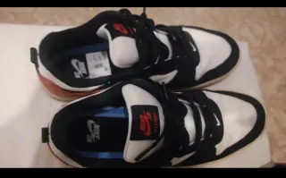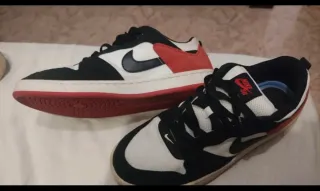 Zapatillas deportivas Nike SB con un diseño moderno y llamativo. - Combinación de colores negro, blanco y rojo. - Logo de Nike SB en la lengüeta. - Sin uso, solamente puestas en tres ocasiones