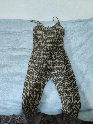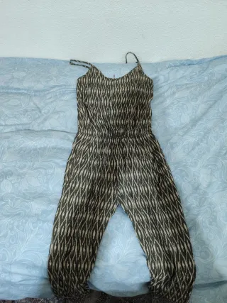 Mono de mujer con un estampado llamativo. - Tirantes finos. - Cintura elástica. - Piernas largas. - Cierre con cremallera