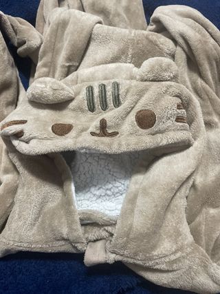 Pijama entero con capucha de Pusheen. - Diseño de gato. - Tejido suave y cómodo. - Talla 11-12 años.