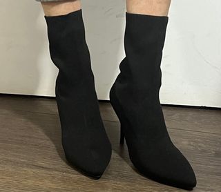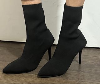 Botas de tacón con un diseño moderno y elegante. - Material textil elástico. - Punta afilada. - Tacón de aguja.