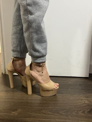 Sandalias tacón alto plataforma beige