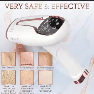 Depiladora láser IPL con pantalla táctil y función de enfriamiento. - 999000 flashes. - Enfriamiento a -10°C. - Incluye cuchilla de afeitar y gafas de sol. En su caja con todos los complementos, usada por un hombre 5 vesces. está perfecta no tienen ningún arañazo ni nada, se vende por no usar.