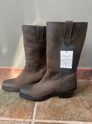 Bota cowboy Zara piel marrón sin estrenar talla 39