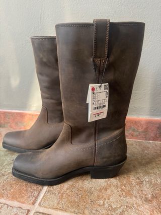 Botas vaquera cowboy en piel de Zara sin estrenar talla 39. Costaron 79€ se ve en etiqueta