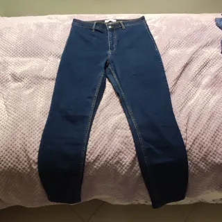 Vaqueros jeggins de Mango en tono azul oscuro. Son MUY cómodos y elasticos. No tienen bolsillos. Tiro alto. Medidas: - Cintura: 40cm - Largo: 103cm