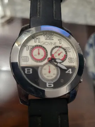 ⌚️Reloj Giovine con diseño deportivo y elegante. ⏱️ Cronógrafo 🔹️ Movimiento de Cuarzo 🔹️ Esfera blanca con detalles en negro y rojo. 🔹️ Correa de goma negra. 🔹️ Bisel plateado. ✨️PRACTICAMENTE NUEVO