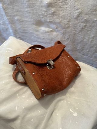 Bolso bandolera de la marca GParagis. de piel repujada hecho a mano, similar a los fabricados por LeatherCraftsUA. - Diseño con acabado texturizado. - Cierre metálico. - Detalles de remaches metálicos.