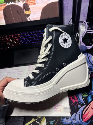 Zapatillas altas Converse Chuck 70 Deluxe Wedge en color negro. Un diseño raro, estan a estrenar porque me quedan grandes. - Corte alto. - Plataforma tipo cuña. - Cierre con cordones.