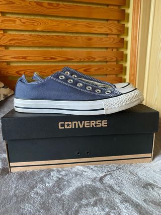 Zapatillas Converse de lona en color azul marino con detalles blancos. - Cierre de cordones. - Suela de goma blanca. - Diseño clásico de caña baja.