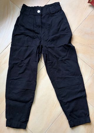 Pantalón de estilo cargo con un diseño moderno. - Cintura alta. - Bolsillos frontales. - Piernas rectas con puños. - Cierre de botón y cremallera.