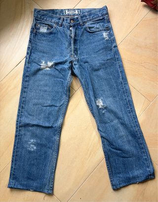 Vaqueros de corte clásico con un estilo desgastado y moderno. - Diseño con rotos y desgastes. - Cintura alta. - Cierre de botones.