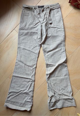 Pantalón de pana de corte acampanado. - Cintura con trabillas y cinturón. - Cierre de cremallera y botón. - Bolsillos laterales. - Bajo con dobladillo ancho.