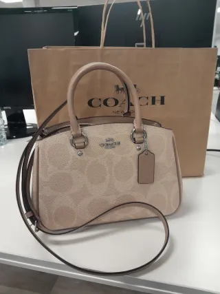 Bolso de mano y hombro de la marca Coach en color arena. - Diseño con monograma. - Asa superior y correa desmontable. - Incluye etiqueta colgante. - Ref. 11001762JAX - Bolsa origina