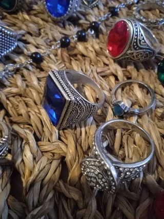 Conjunto de 40 anillos y un rosario. - Anillos en tonos dorados y plateados. - Diseño variado para combinar.