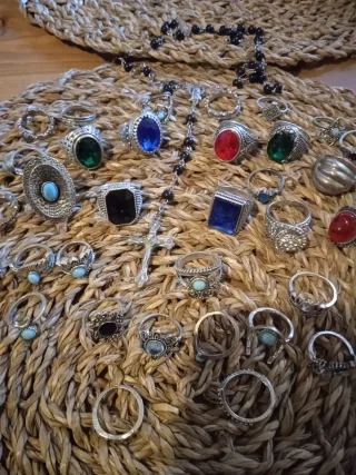 Lote de 40 anillos y rosario. Diferentes tallas.