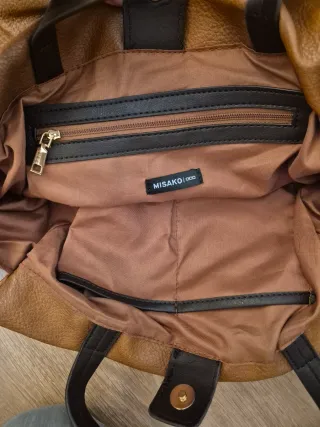 Bolso de mano o al hombro de la marca Misako. - Material: Piel sintética. - Color: Marrón.