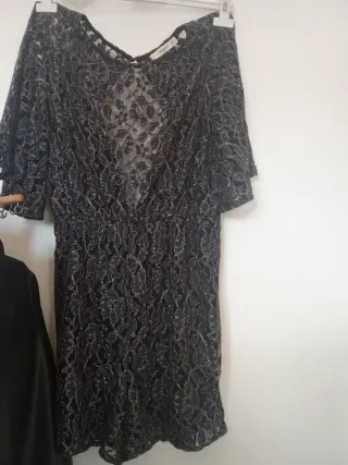 Mono corto de Mango con un diseño elegante y moderno. - Tejido de encaje con detalles plateados. - Cintura elástica para un ajuste cómodo. - Mangas cortas acampanadas.