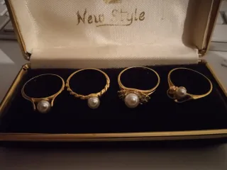 Lote 4 Anillos Chapados Oro Perlas Vintage