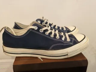 Zapatillas Converse bajas de lona en color azul marino. En muy buen estado (las habré puesto 6-7 veces). - Cordones blancos. - Suela de goma blanca. - Detalle de costuras.