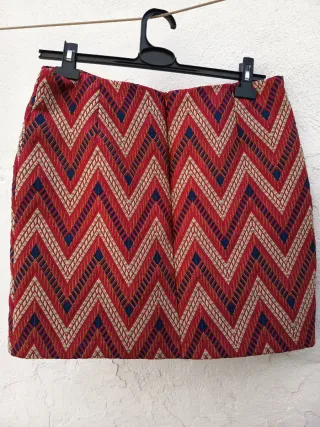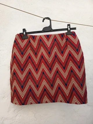 Falda corta con un llamativo estampado geométrico en zigzag. - Diseño de zig-zag. - Tejido texturizado.