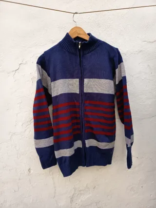 Jersey de punto con diseño de rayas horizontales. Cierre completo con cremallera. - Cuello alto. - Puños y bajo de canalé. - Mangas con rayas rojas y grises.